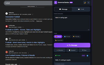 GrammarGenius Pro เป็นส่วนเสริม Chrome ฟรีที่ออกแบบมาเพื่อปรับปรุงการเขียนของคุณโดยการแก้ไขไวยากรณ์ โทนเสียง และการสะกดคำแบบเรียลไทม์ มันรองรับแพลตฟอร์มการส่งข้อความต่างๆ เช่น WhatsApp, Slack, Twitter และ SMS ผ่านโหมดข้อความ ซึ่งมีฟีเจอร์ต่างๆ เช่น การแก้ไขไวยากรณ์ การทำให้ข้อความสั้นลง และการเปลี่ยนรูปแบบคำพูด ผู้ใช้สามารถเลือกจากโทนเสียงหลายแบบรวมถึงไม่เป็นทางการ ทางการ เป็นมิตร และมั่นใจ เพื่อให้แน่ใจว่าข้อความของพวกเขาสื่อถึงความรู้สึกที่ตั้งใจไว้